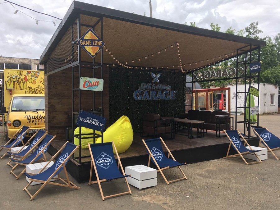 Каля зоны ўсталяваны столікі з шэзлонгамі: тут можна расслабіцца, пакаштаваць сэты закусак разам з Seth&Riley’s GARAGE. Усі 3 смака напітку - Black Cherry, Lemon, Lingonberry – будуць прадавацца ў BeerCap.