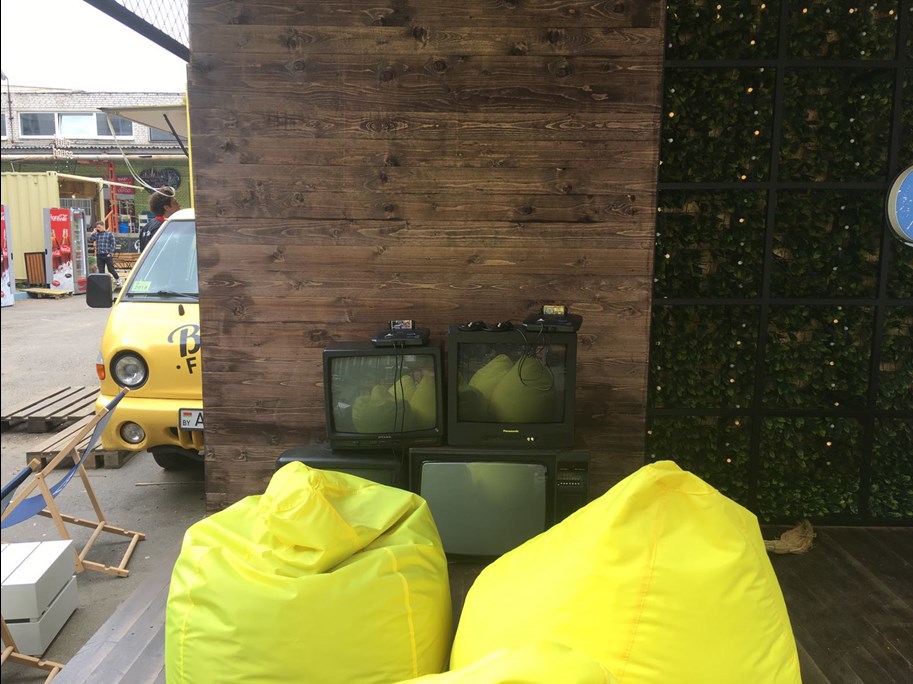 Тут можна адпачыць на канапах, зрабіць класныя фота ці пагуляць на олдскульных прыстаўках у любімыя гульні з дзяцінства.